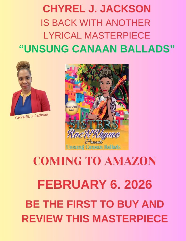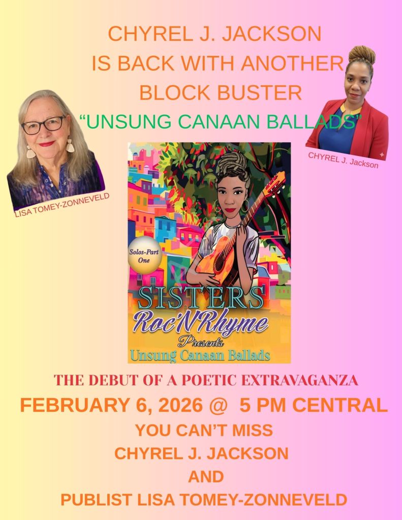 Share with us in CELEBRATION of “Unsung Canaan Ballads” on February 6 and 7. The book release date is February 6, so we are excited to share in the joy of a new book. Not only is this a new book, it’s the first SOLO Poetry Collection by Chyrel J Jackson.