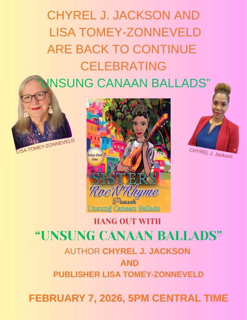 We are ready to celebrate the Book Launch for Unsung Canaan Ballads by Chyrel J Jackson. This much anticipated event is on February 22 at 2 p.m. EST via ZOOM.