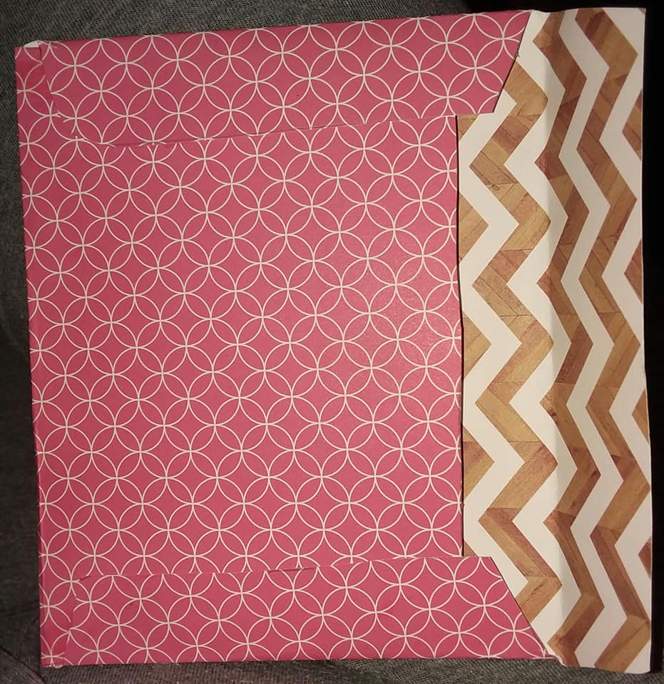 4. Daughter got creative and made envelopes. She makes lovely cards. She has made so many that we have a surplus. I saw on Facebook where a friend made envelopes, so I suggested to daughter that she make some, too. She jumped right on it. She made the pattern from an envelope she took apart. Here is one of her envelopes. See how the inside pops! She used two sided paper.