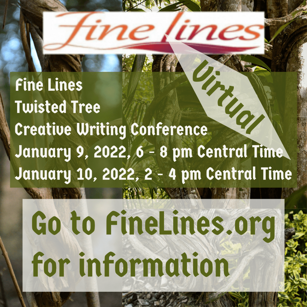 I am happy to report that Fine Lines Literary Journal is having a virtual conference on both January 9 6-8 P.M. Central Time & January 10 2-4 Central Time.