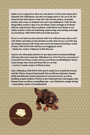 Ashley is not a dog person. She’s not. Just ask her. Yet for some reason she’s obsessed with Chihuahuas. And she’s not happy about it. No, not at all. Not when she has other issues to deal with. Like chronic anxiety. And panic attacks. And a crazy ex-husband who can’t stop stalking her. Yeah, the last thing Ashley needs is a dog. Or so she thinks. Until a stranger at PetSmart tells her a dog is better than a husband. Could this be true? Ready or not, Ashley is about to find out. Endearing, empowering, entertaining, and laugh-out-loud funny. THE GOOD DOG is all of that and more!