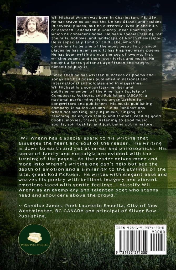 Wil Michael Wrenn explores desiderium in the sense of longing. Through his poetry collection, one can feel the deep desire for something once cherished. There is a deep desire in the heart for what it once had. Loss brings with it silence, regret, and pain. Wrenn explores this in his unique way, going deep into the subject.