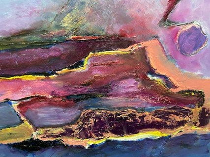 It’s a collection of short poems written to Mike’s paintings. His paintings draw the reader in visually, and the poetry draws the reader in mentally/emotionally.